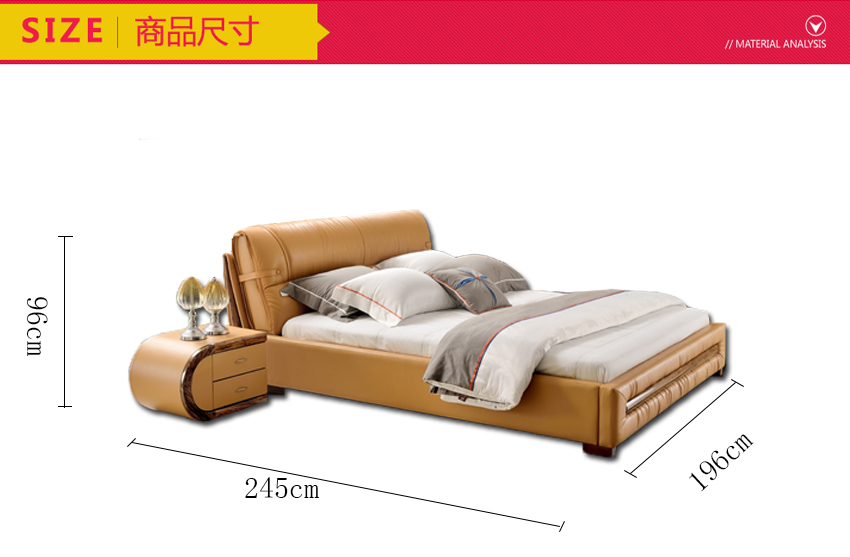 外围尺寸: 床:1.8*2.0; 床头柜:60*42*42