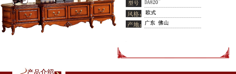 大旗智造 欧式地柜实木雕花沙比利茶几电视柜 DA820#