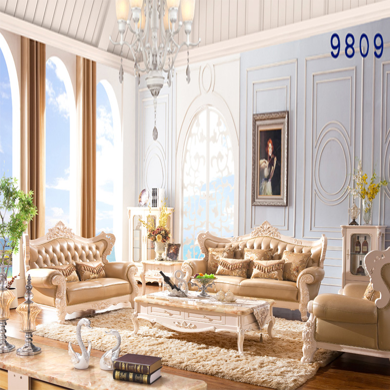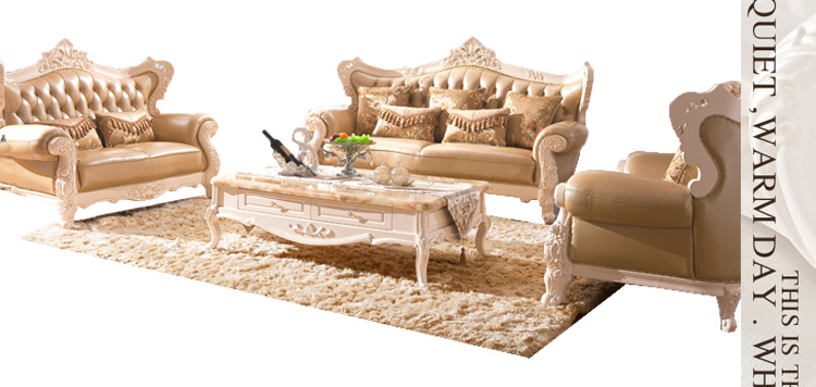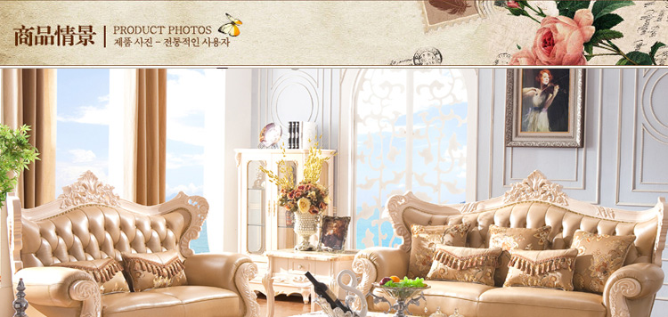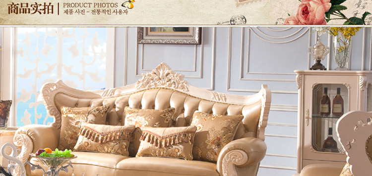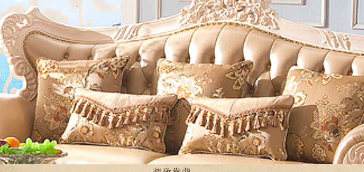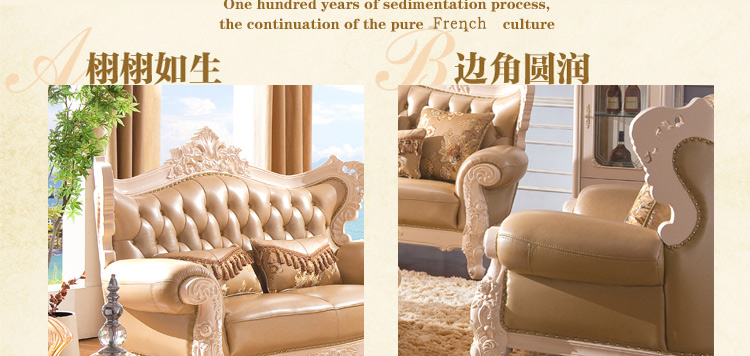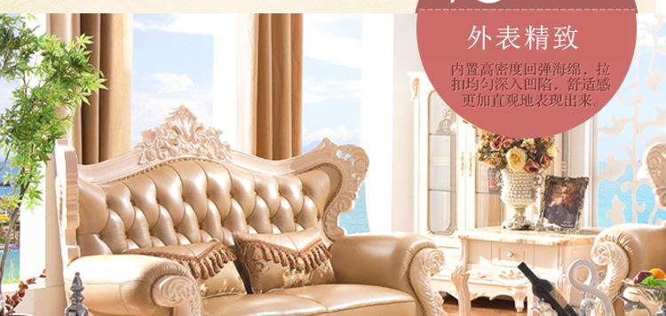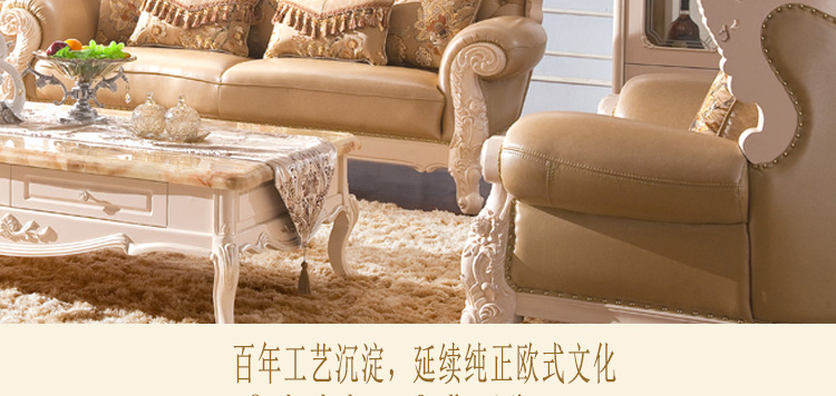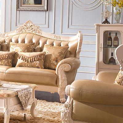 奥迪克欧式沙发小户型客厅田园实木沙发单人双人三人U型皮艺沙发组合9809#