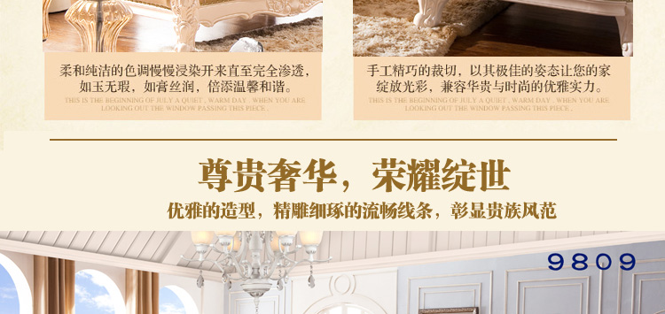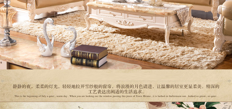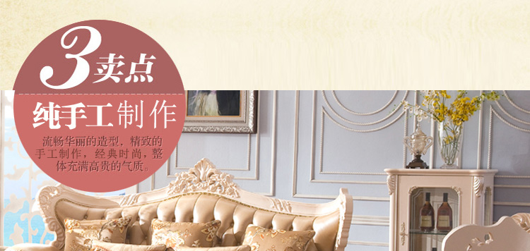 欧式风格家具特点讲究手工精细的裁切雕刻,轮廓和转折部分由对称而富有节奏感的曲线或曲面构成,结构简练,线条流畅,色彩富丽,艺术感强,给人的整体感觉是华贵优雅,十分庄重。