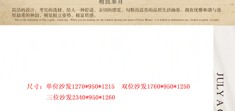 尺寸:单位沙发:1270*950*1215; 双位沙发:1760*950*1250; 三位沙发:2340*950*1260