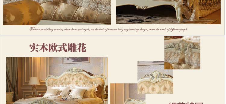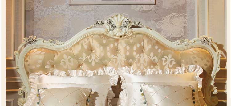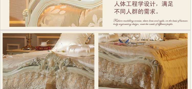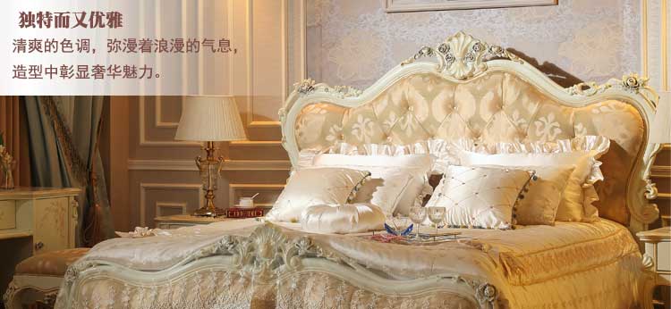 厂家直销欧式新款布艺床实木雕花双人床1.8*2.0米双人床G01