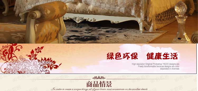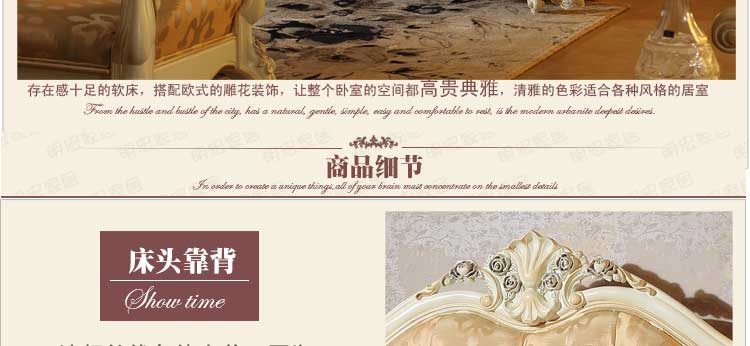 欧式风格家具特点讲究手工精细的裁切雕刻,轮廓和转折部分由对称而富有节奏感的曲线或曲面构成,结构简练,线条流畅,色彩富丽,艺术感强,给人的整体感觉是华贵优雅,十分庄重。