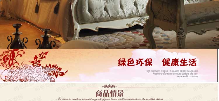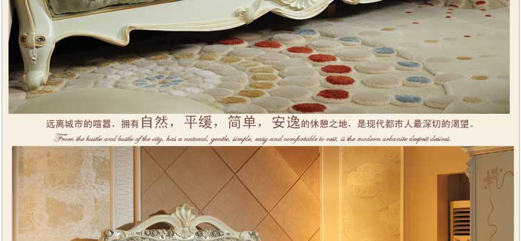 欧式风格家具特点讲究手工精细的裁切雕刻,轮廓和转折部分由对称而富有节奏感的曲线或曲面构成,结构简练,线条流畅,色彩富丽,艺术感强,给人的整体感觉是华贵优雅,十分庄重。