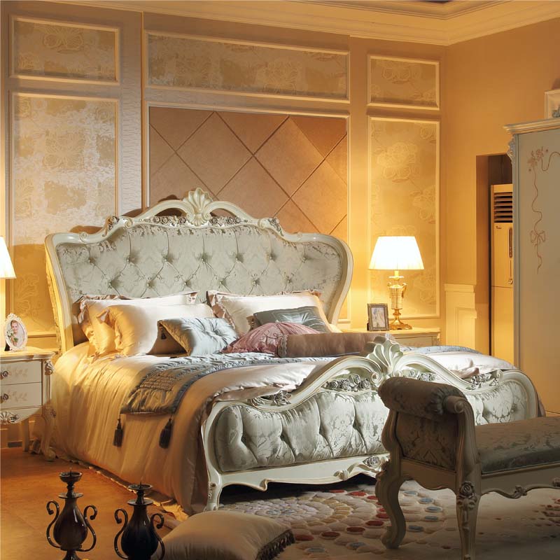 万特美家 欧式新款双人床经典实木雕花布艺大床百搭双人床G02