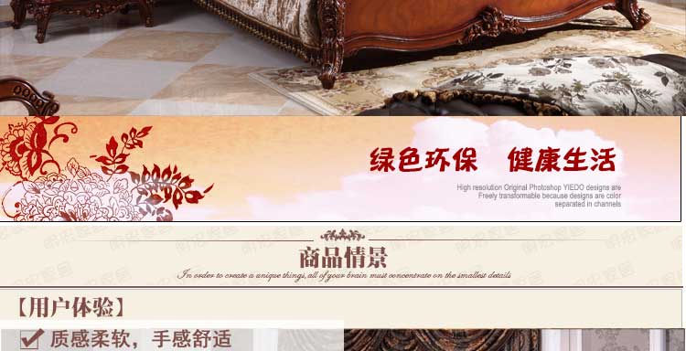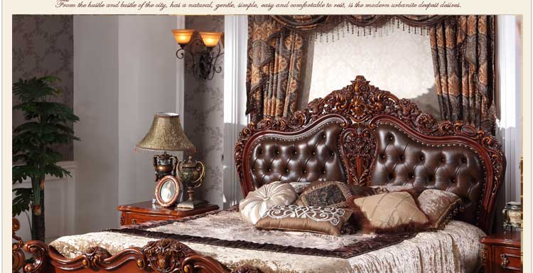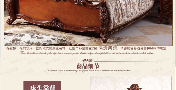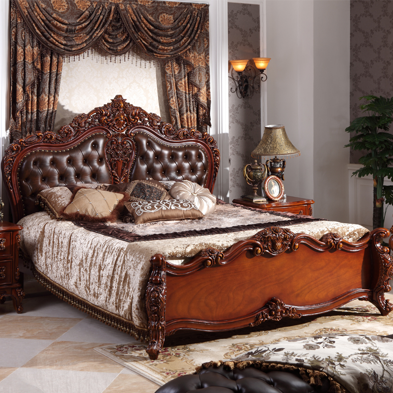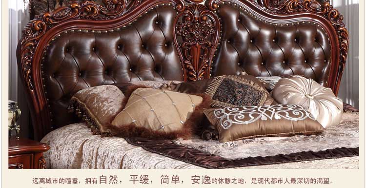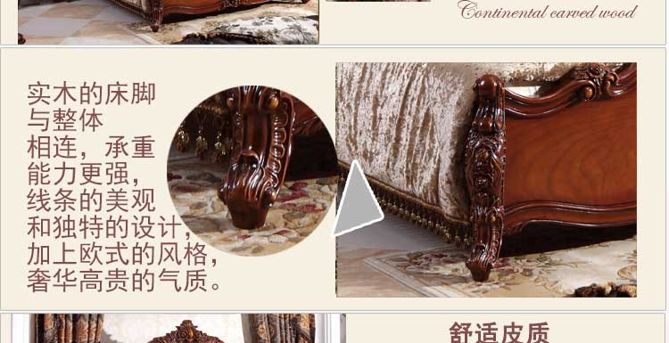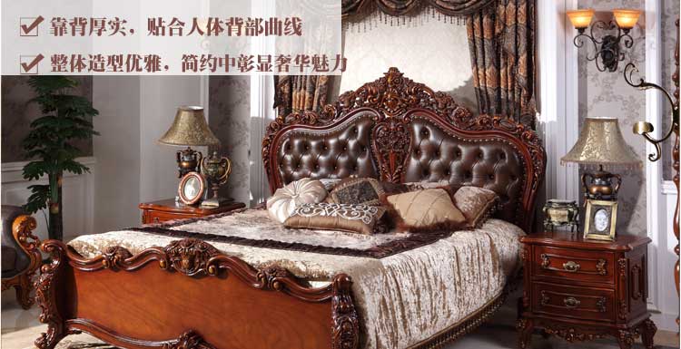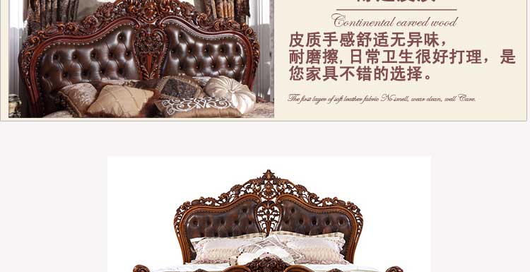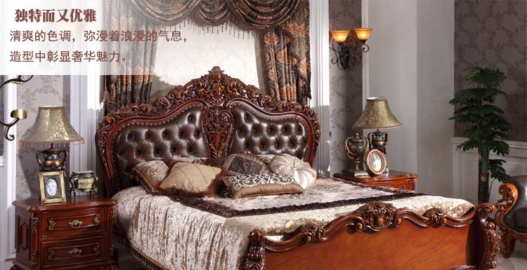 万特美家 欧式床实木床双人床1.8米法式床皮艺床新古典复古家具A13