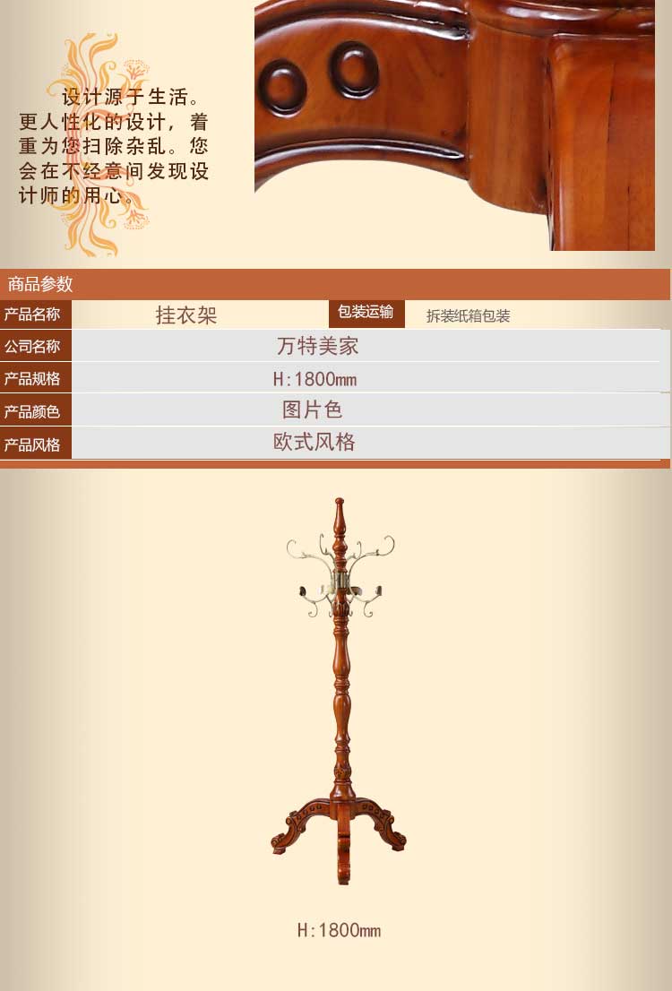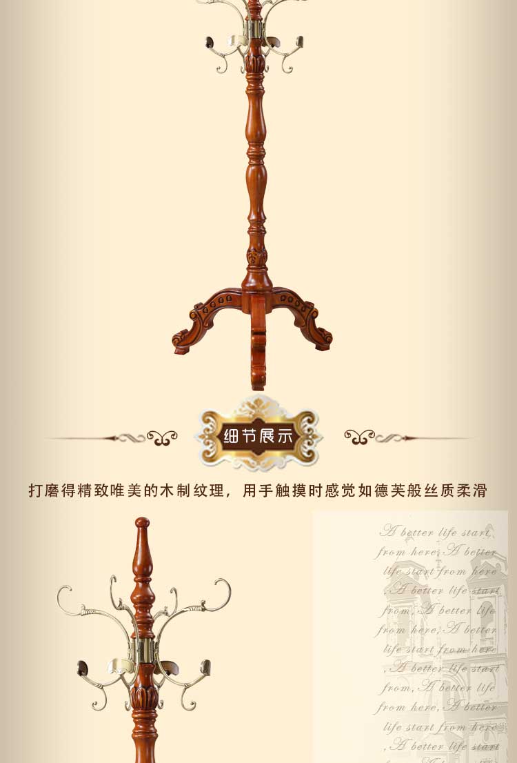 万特美家 欧式实木衣帽架落地挂衣架创意卧室挂包架室内衣服架子 B27