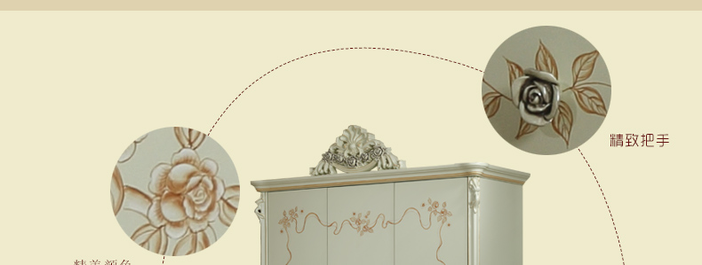 欧式风格家具特点讲究手工精细的裁切雕刻,轮廓和转折部分由对称而富有节奏感的曲线或曲面构成,结构简练,线条流畅,色彩富丽,艺术感强,给人的整体感觉是华贵优雅,十分庄重。