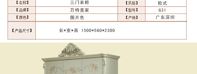 万特美家厂家直销欧式奢华三门衣柜卧室大小户型衣柜G31