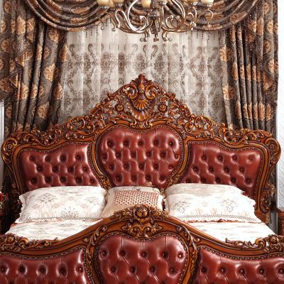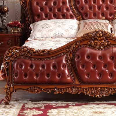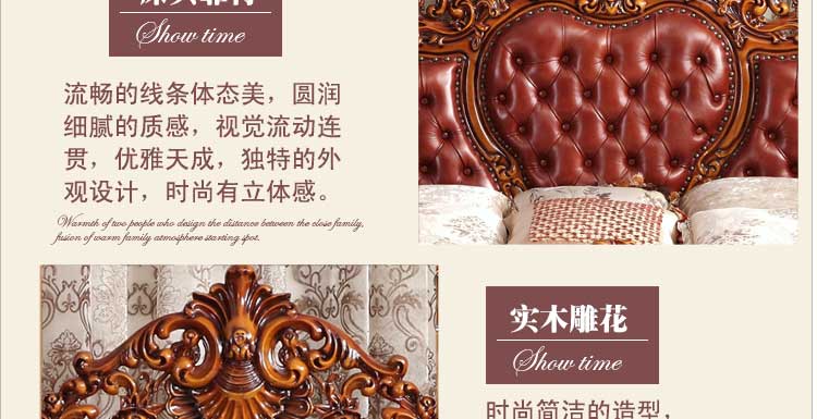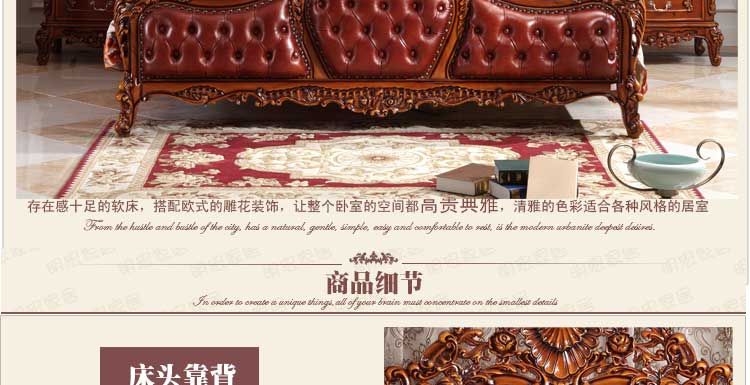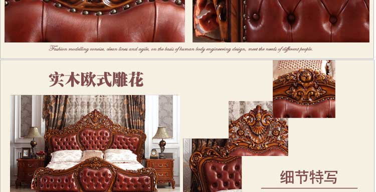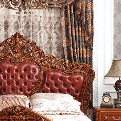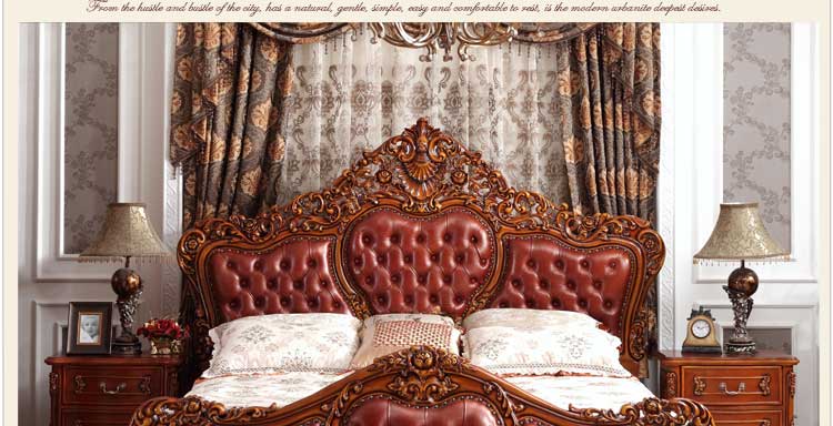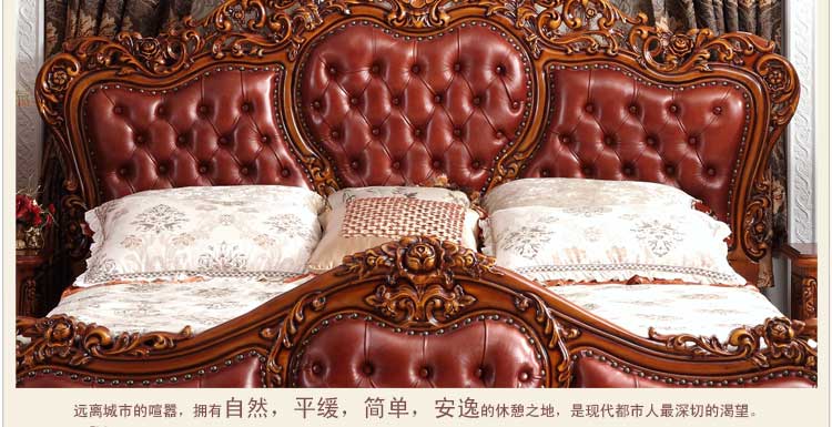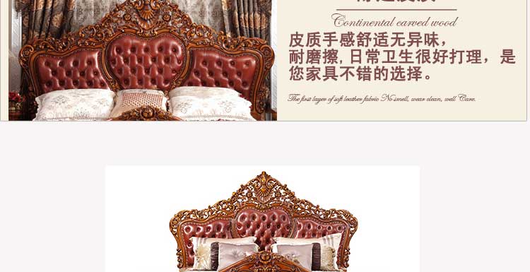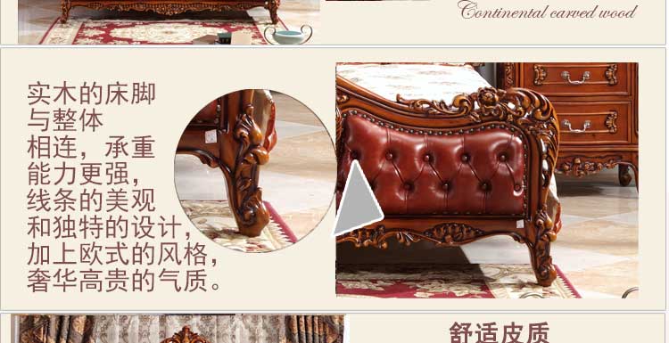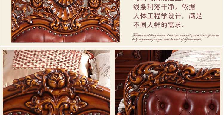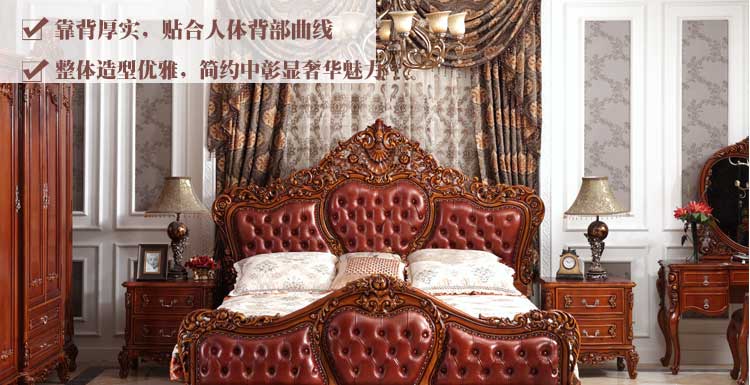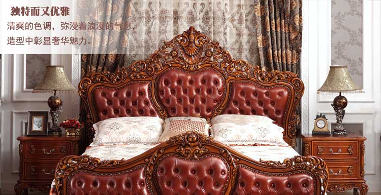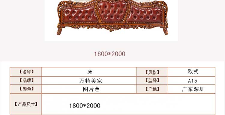 万特美家 欧式床双人床 欧式真皮实木床深色奢华双人床A15床