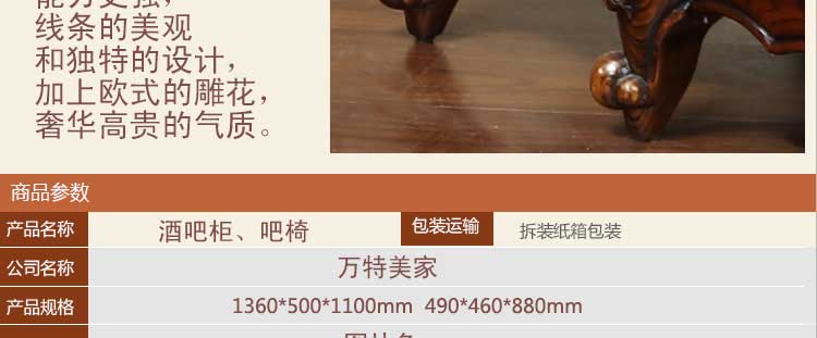 万特美家 欧式实木吧台 吧椅 欧式酒柜 B75
