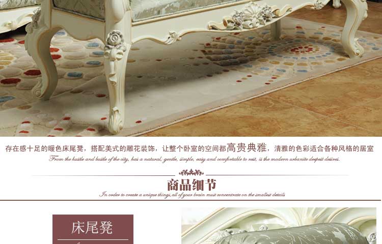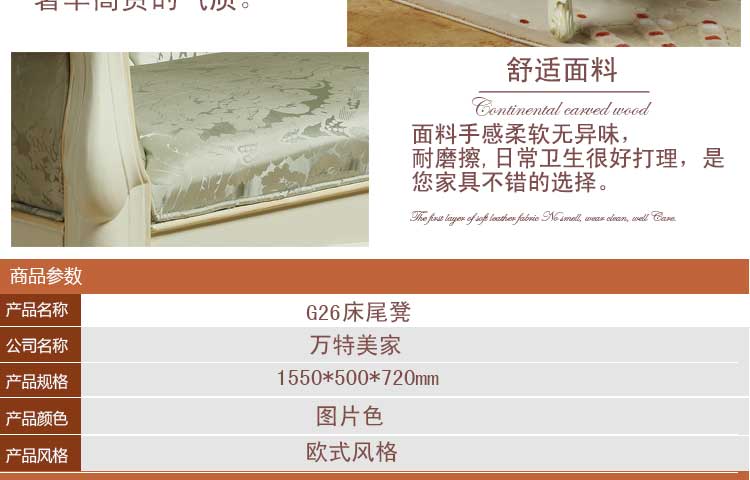 万特美家厂家直销卧室欧式奢华床尾凳大小户型卧室床尾凳G26