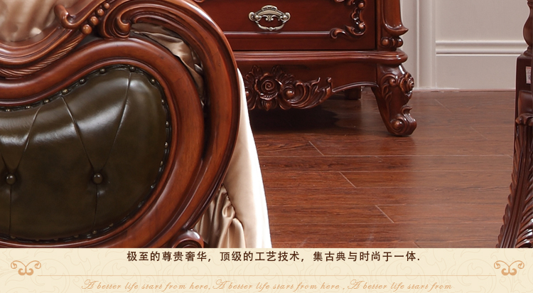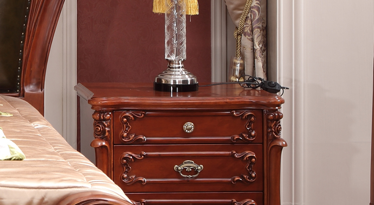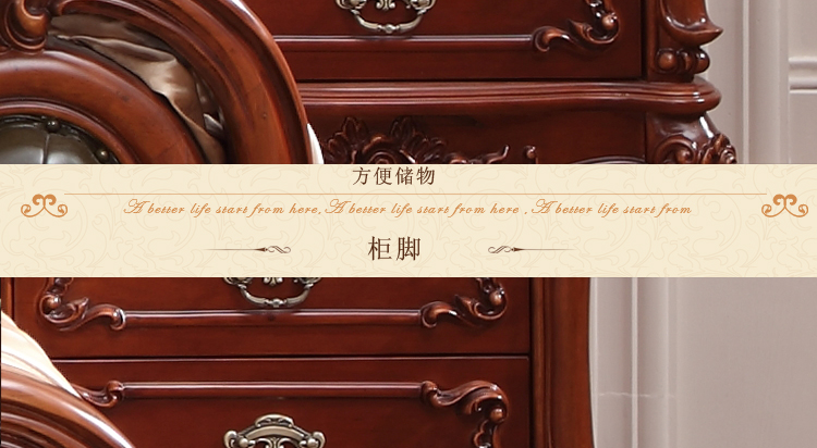 万特美家 欧式实木新古典床头柜 法式深色雕花复古储物柜A16床头柜