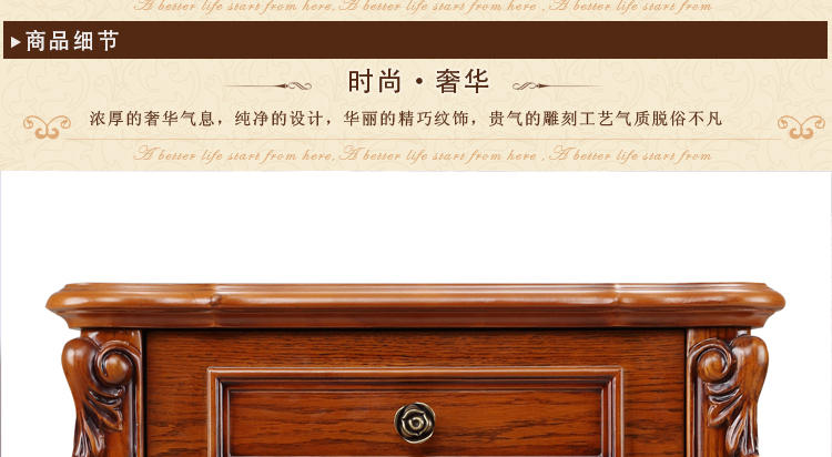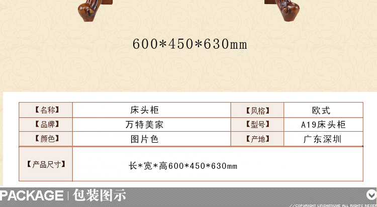 万特美家 深色床头柜 欧式床头柜 高档欧式床头柜 储物柜A19床头柜
