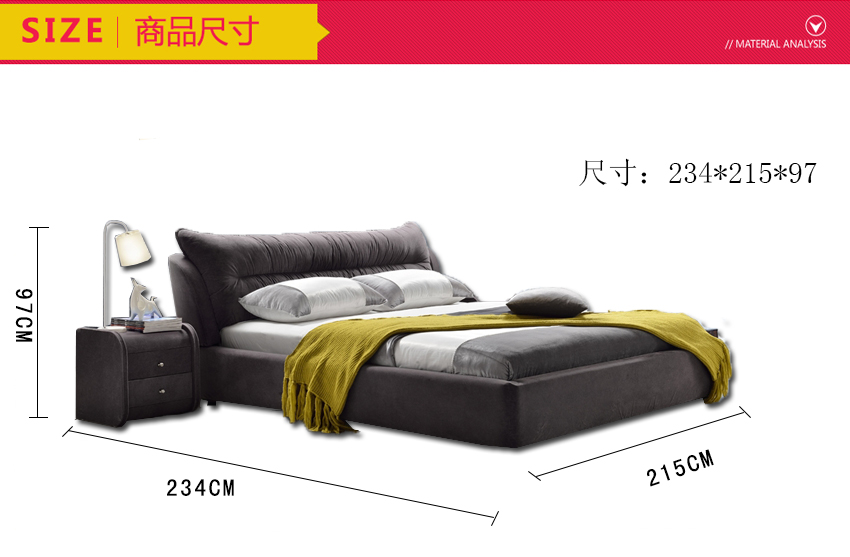 尺寸:1.8*2.0;床头柜:48cm*49cm*43cm
