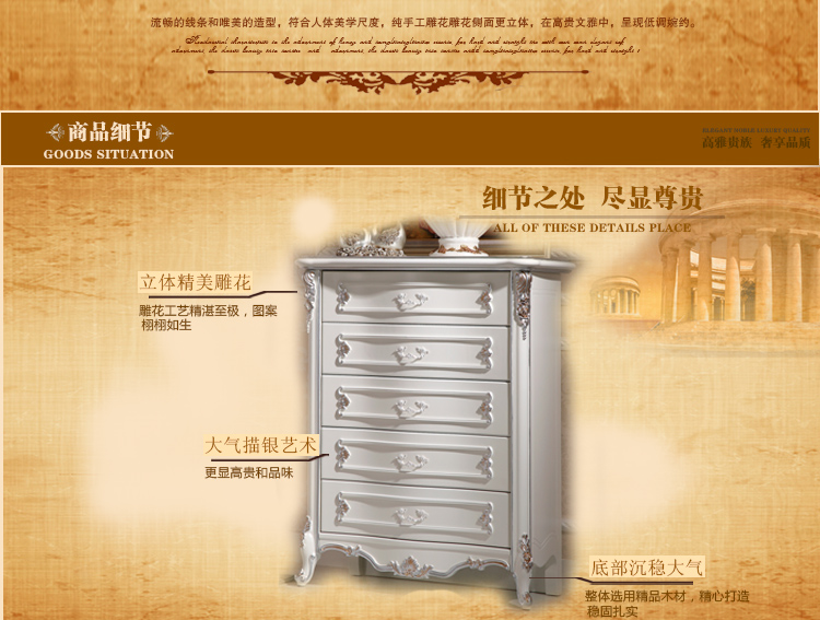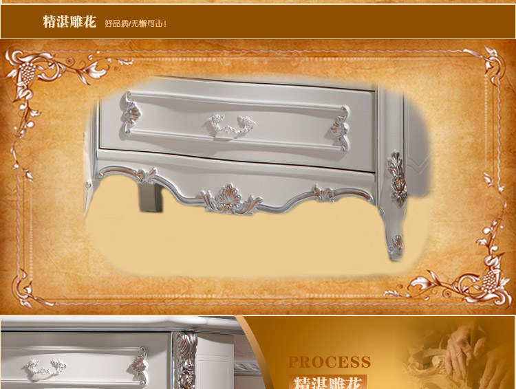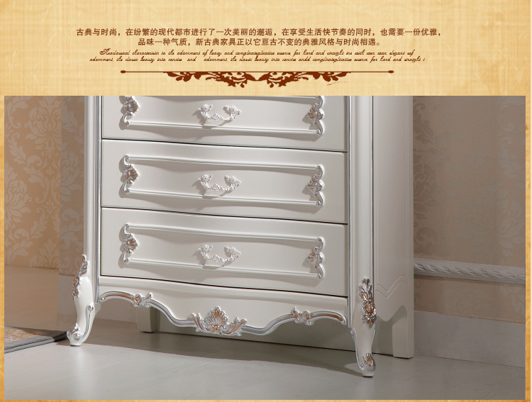 尚多家居 EG801 象牙白+银箔做旧法式雕花 客厅卧室 抽屉储物柜五斗柜收纳柜