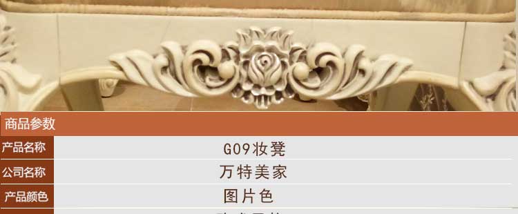 万特美家 厂家直销欧式新款妆凳实木雕花布艺妆凳新款妆凳G09妆凳