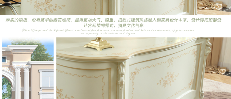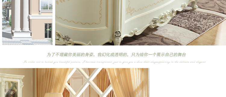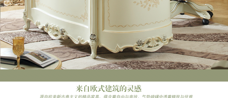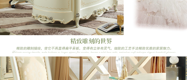 欧式风格家具特点讲究手工精细的裁切雕刻,轮廓和转折部分由对称而富有节奏感的曲线或曲面构成,结构简练,线条流畅,色彩富丽,艺术感强,给人的整体感觉是华贵优雅,十分庄重。