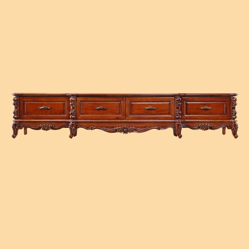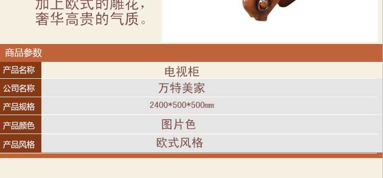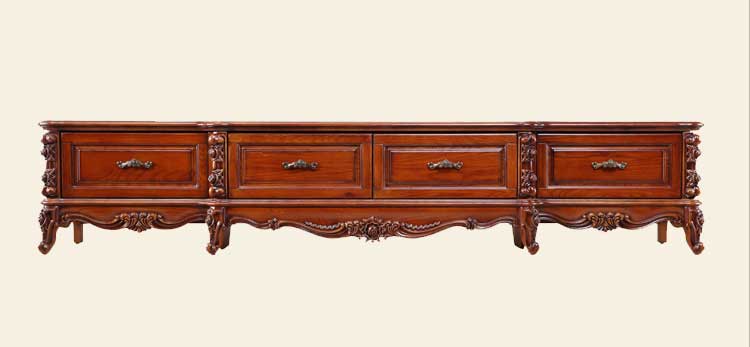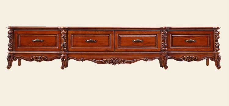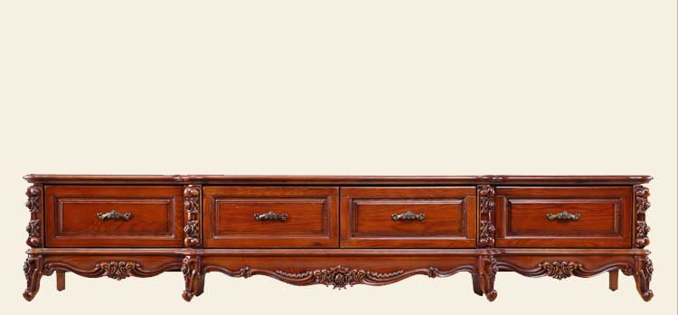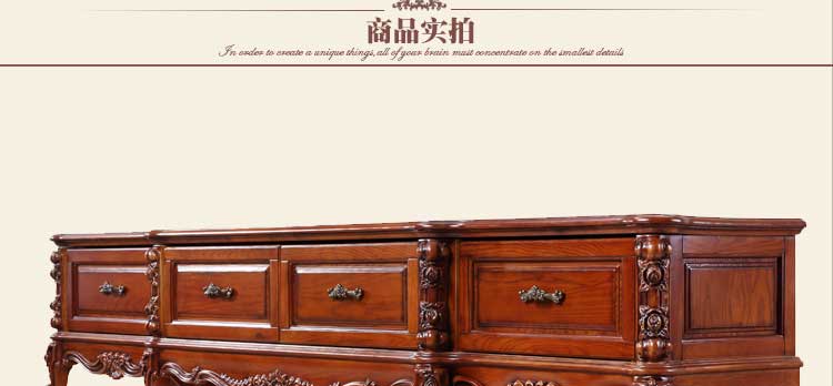万特美家 欧式电视柜实木客厅深色乡村复古储物柜2.4米电视机柜D51电视柜