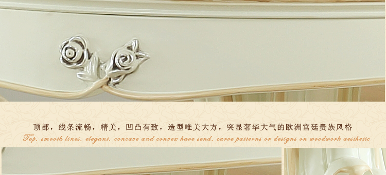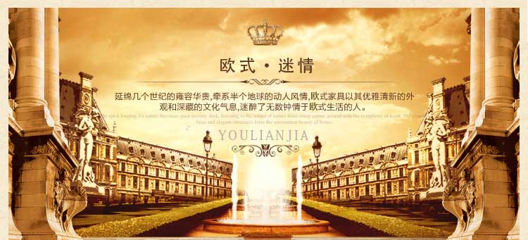 欧式风格家具特点讲究手工精细的裁切雕刻,轮廓和转折部分由对称而富有节奏感的曲线或曲面构成,结构简练,线条流畅,色彩富丽,艺术感强,给人的整体感觉是华贵优雅,十分庄重。