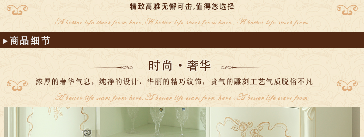 欧式风格家具特点讲究手工精细的裁切雕刻,轮廓和转折部分由对称而富有节奏感的曲线或曲面构成,结构简练,线条流畅,色彩富丽,艺术感强,给人的整体感觉是华贵优雅,十分庄重