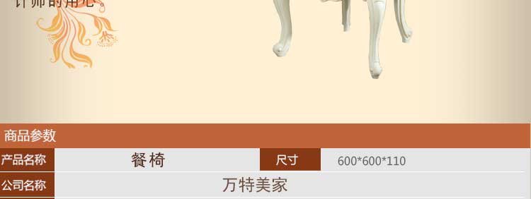 万特美家 实木经典雕花餐椅欧式布艺餐椅餐厅百搭款餐椅P01