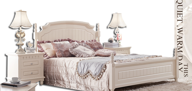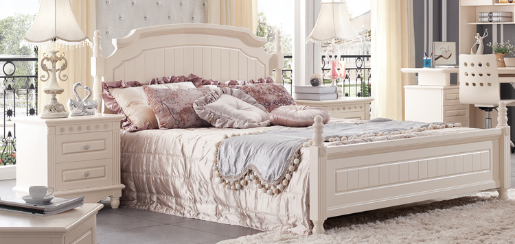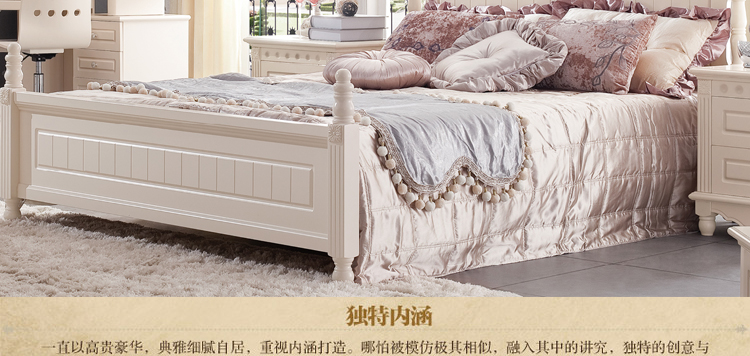 奥迪克欧式风格实木白色高端典雅大气公主床实木双人床M9301A