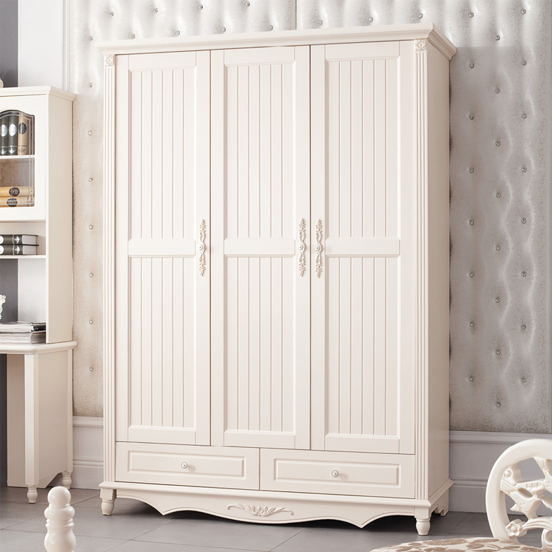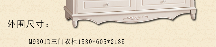 奥迪克欧式风格白色实木雕花收纳存物高档奢华卧室衣柜M9301D