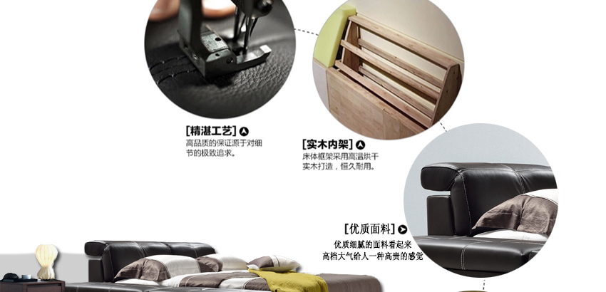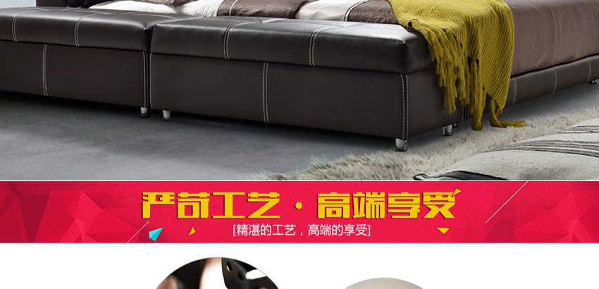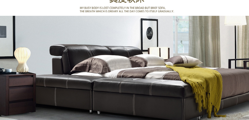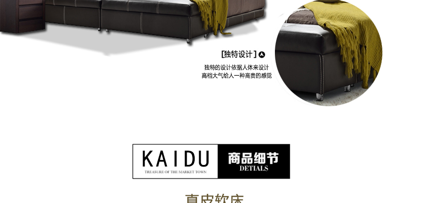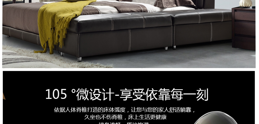 凯度皮床 现代真皮床 软体床储物皮床1.8米婚床皮艺床 床 榻榻米皮床P908