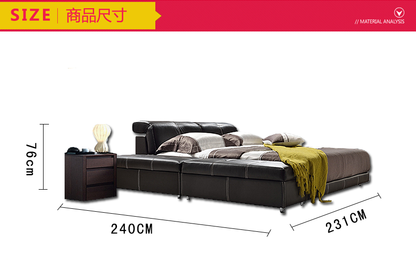 尺寸:1.8*2.0;床头柜:55cm宽*46cm高*48cm厚