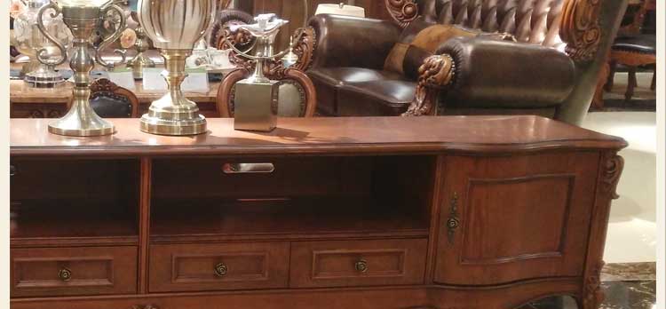 万特美家 欧式电视柜 法式简约实木地柜 欧式深色奢华电视柜D59电视柜