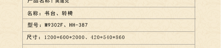 外围尺寸:M9302F书台1200*600*2000; HH-387转椅420*540*860;