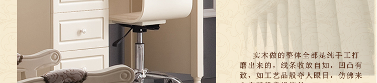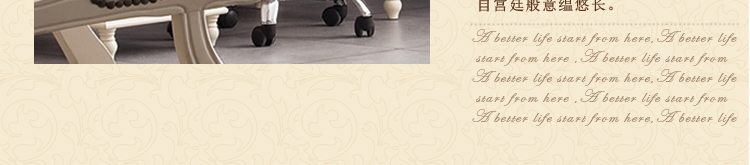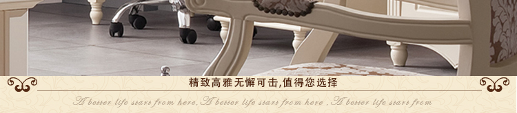 欧式风格家具特点讲究手工精细的裁切雕刻,轮廓和转折部分由对称而富有节奏感的曲线或曲面构成,结构简练,线条流畅,色彩富丽,艺术感强,给人的整体感觉是华贵优雅,十分庄重。