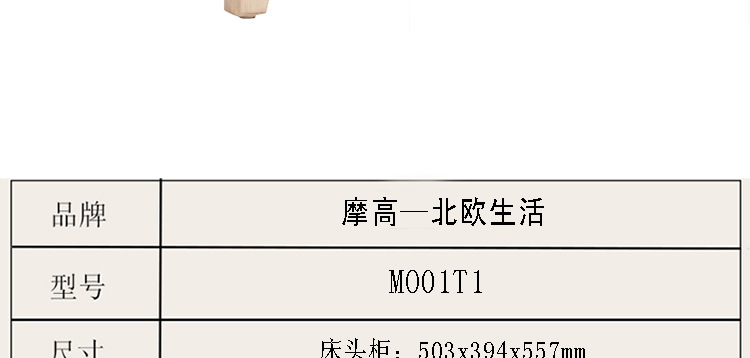摩高家具 北欧风格家具新中式家具 全实木床头柜 储物柜 M001T1