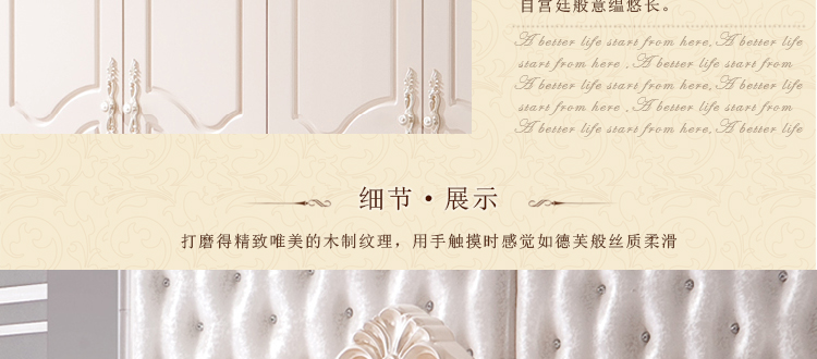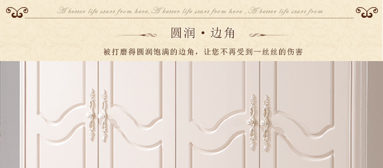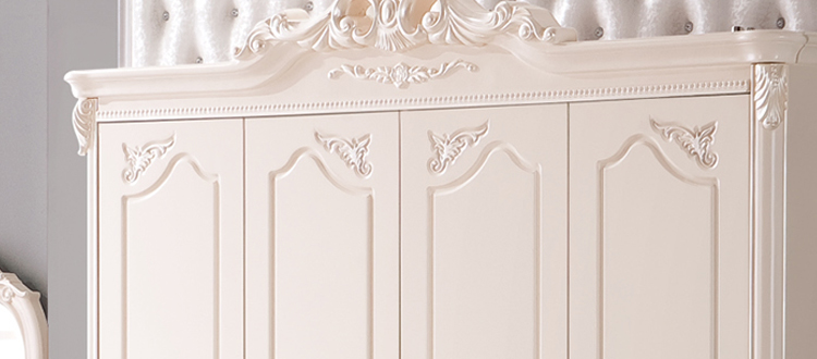 奥迪克欧式田园四门卧室衣柜白色欧式大衣橱家具M9328D