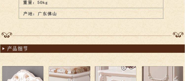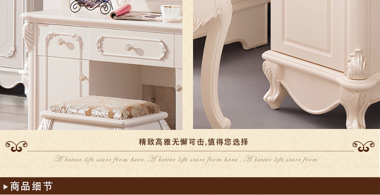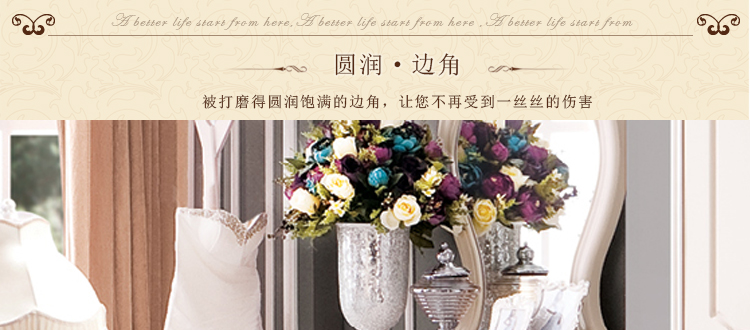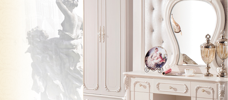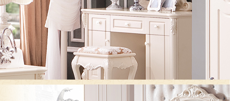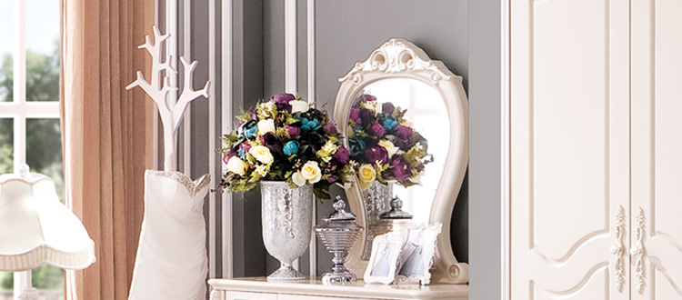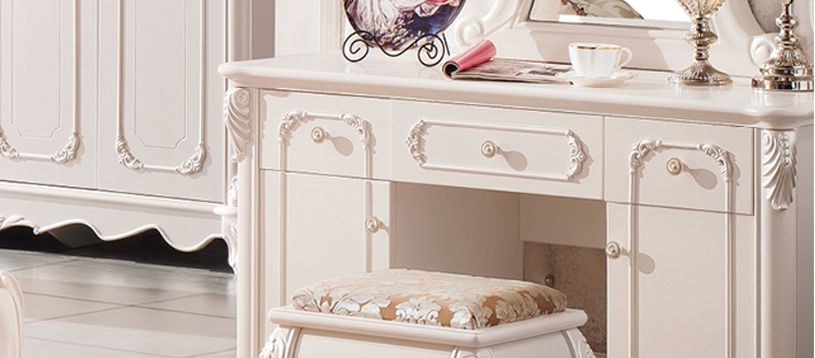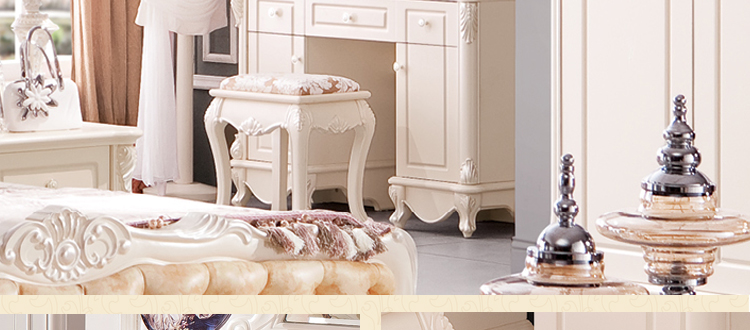 欧式风格家具特点讲究手工精细的裁切雕刻,轮廓和转折部分由对称而富有节奏感的曲线或曲面构成,结构简练,线条流畅,色彩富丽,艺术感强,给人的整体感觉是华贵优雅,十分庄重。