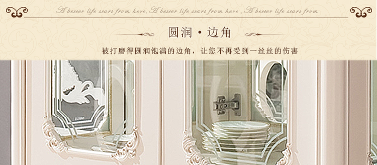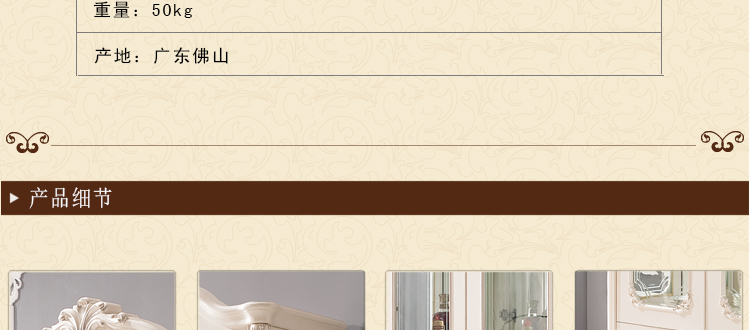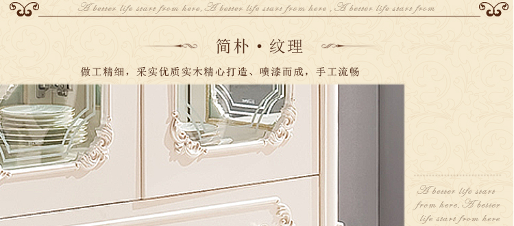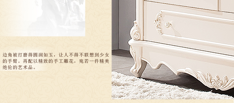 欧式风格家具特点讲究手工精细的裁切雕刻,轮廓和转折部分由对称而富有节奏感的曲线或曲面构成,结构简练,线条流畅,色彩富丽,艺术感强,给人的整体感觉是华贵优雅,十分庄重。