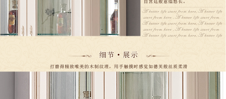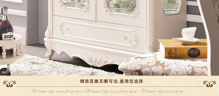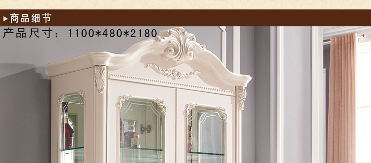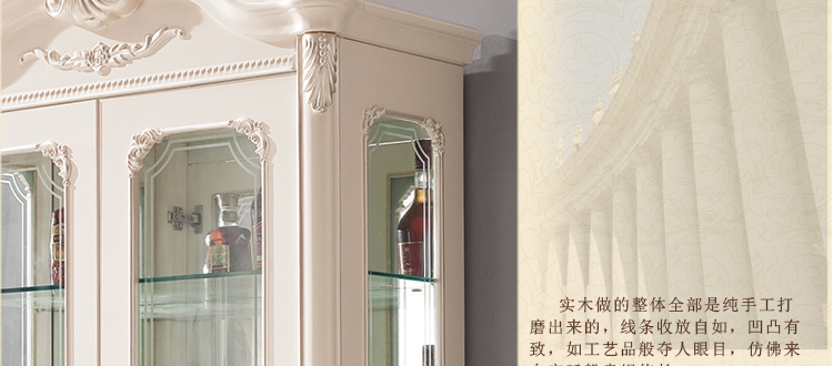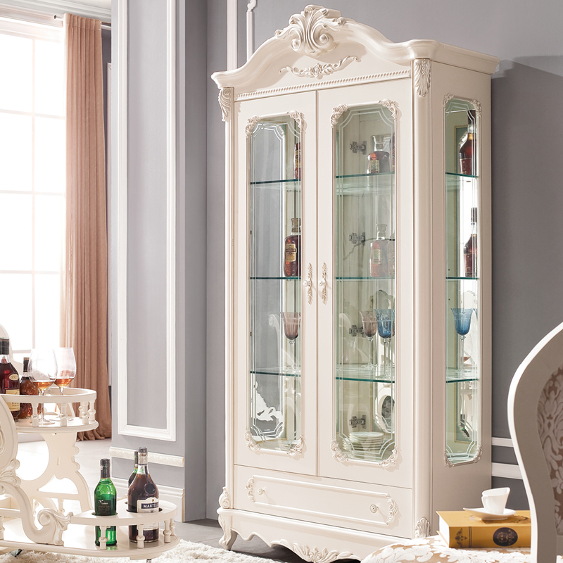 奥迪克欧式实木客厅酒柜白色玻璃酒柜实木玄关柜装饰柜两门酒柜FK-0302