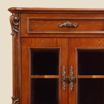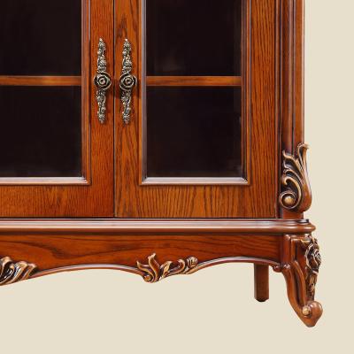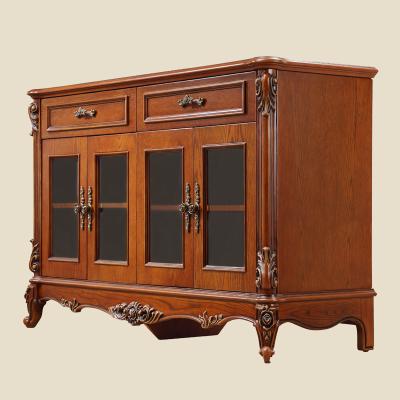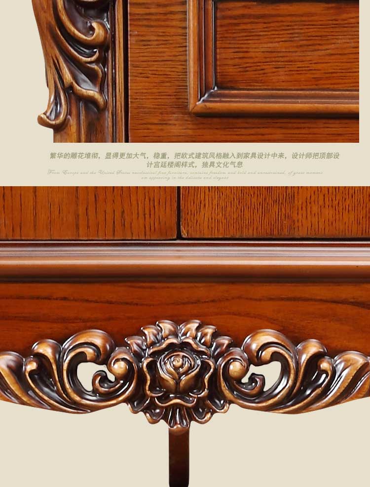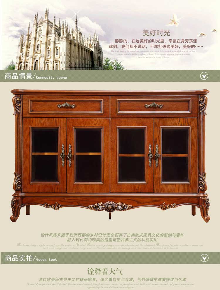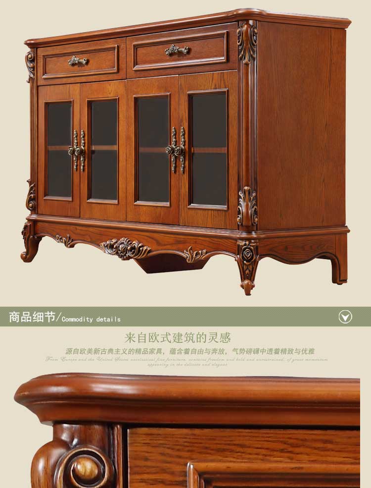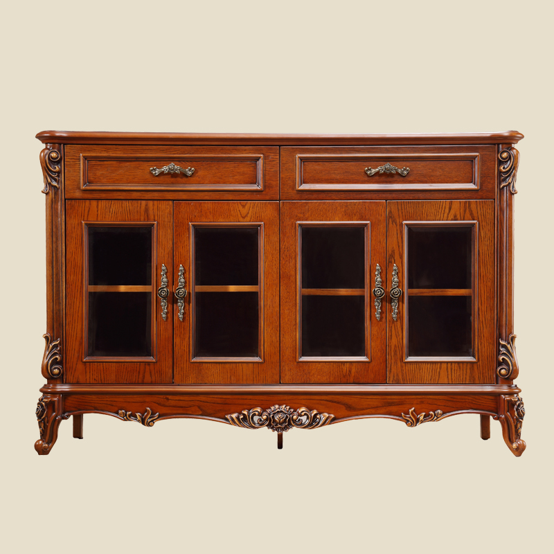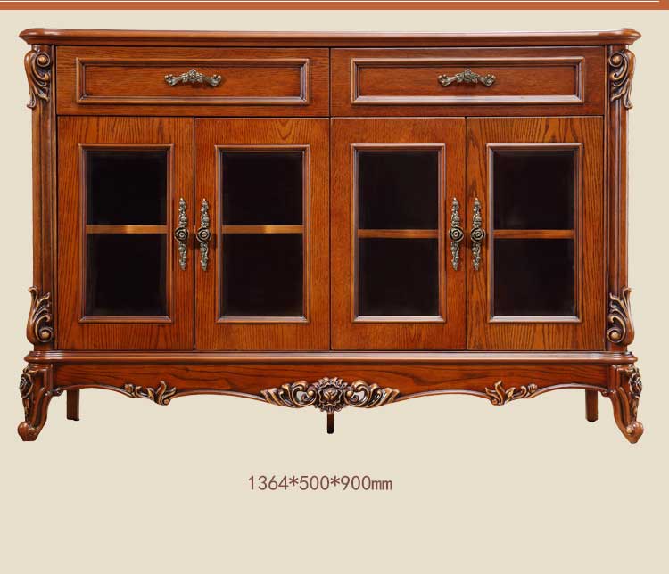 万特美家 四门餐边柜纯实木雕花简约玻璃柜欧式餐厅碗柜 D94