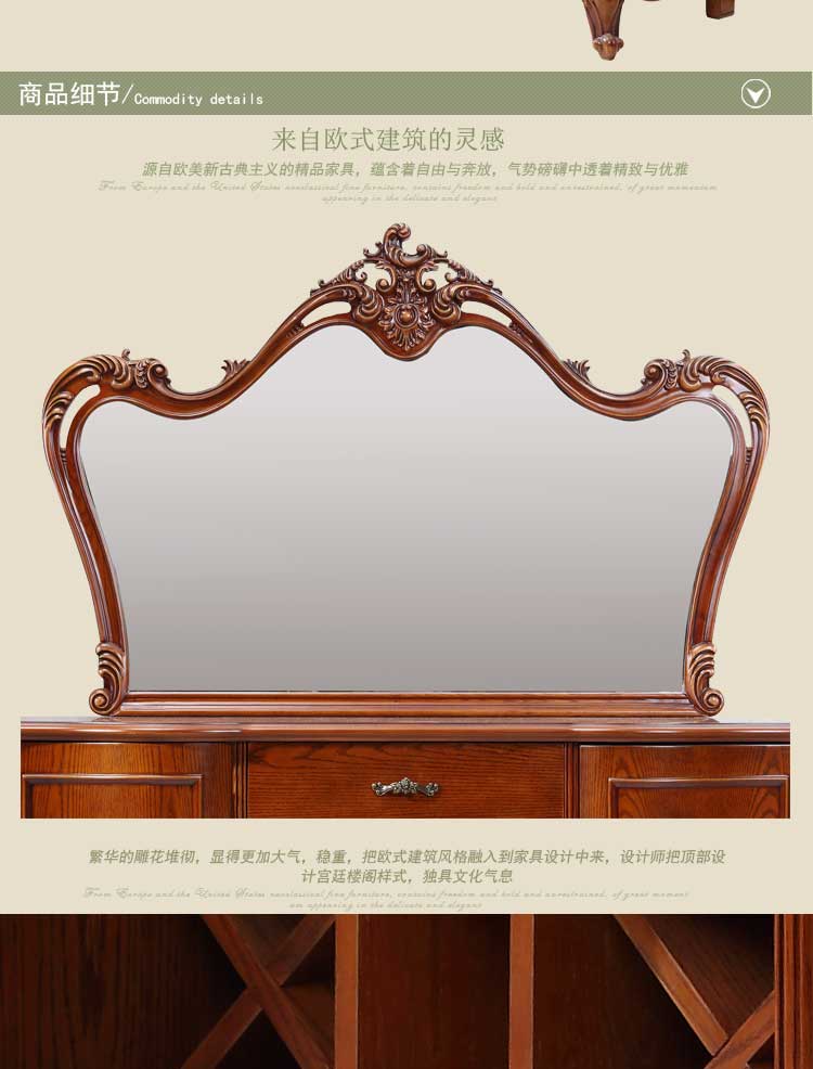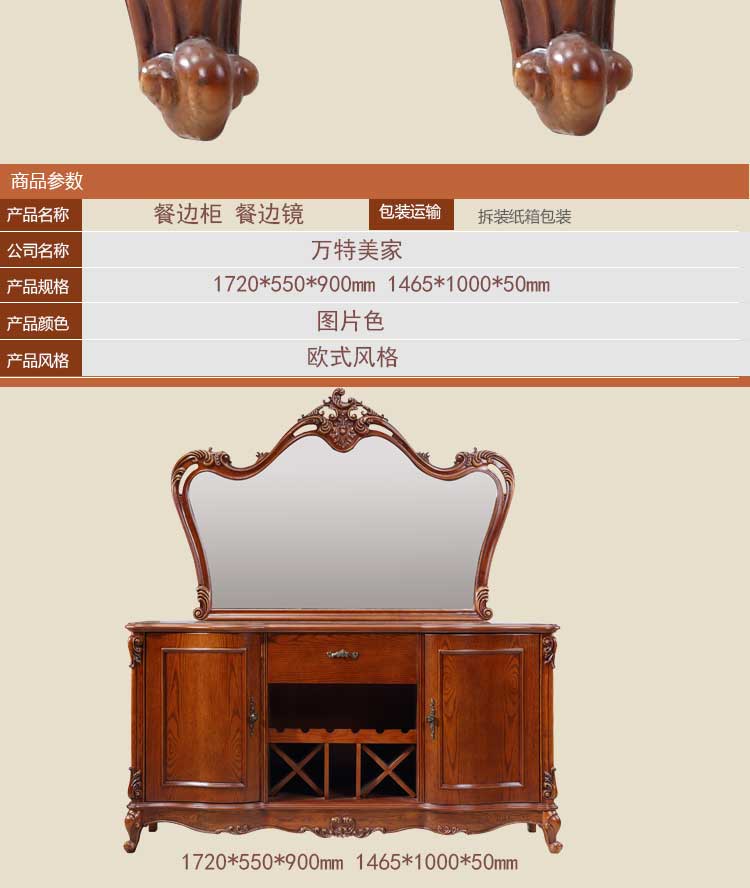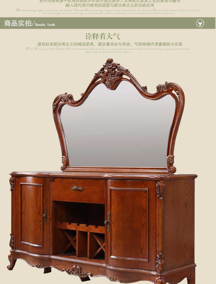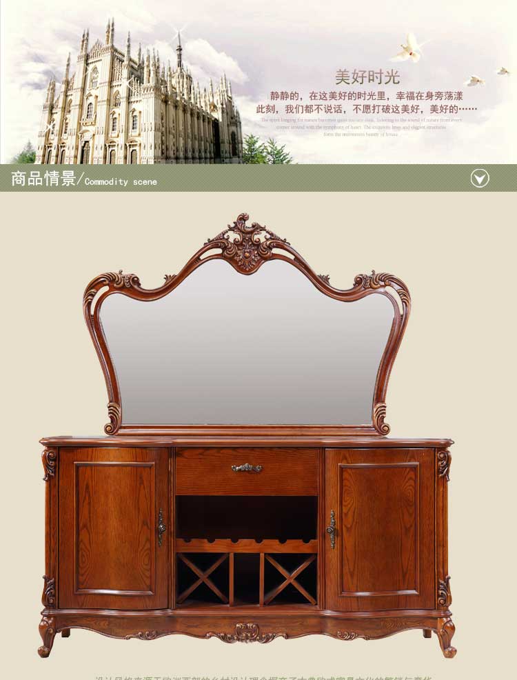 万特美家 欧式餐边柜 别墅家用实木雕刻餐边柜储物柜碗碟柜 D95