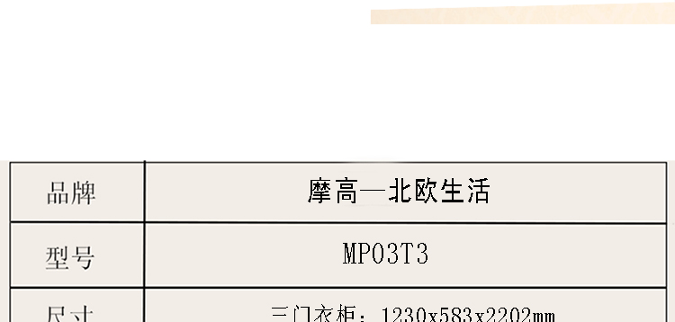 摩高家具 实木三门衣柜储物衣柜组合整体衣柜衣橱大衣 MPO3T3