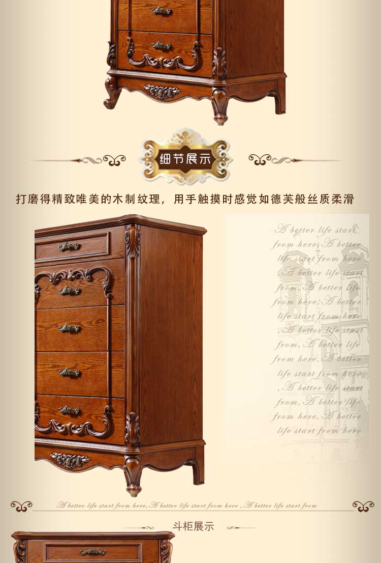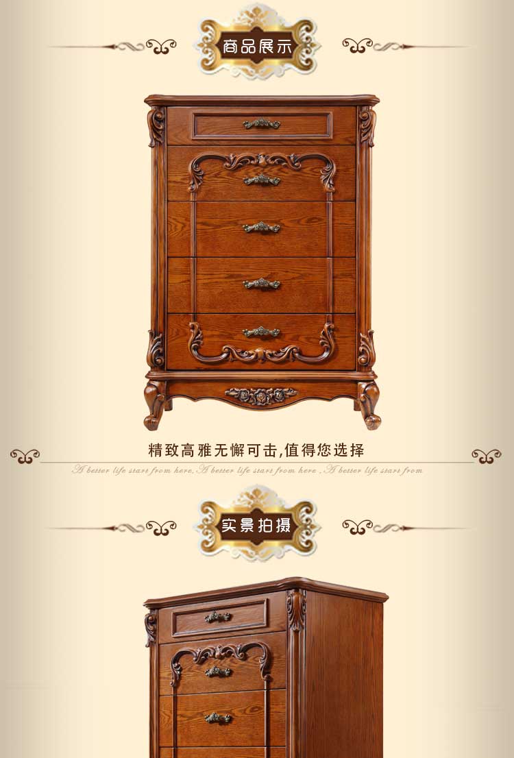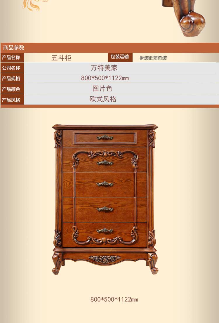 万特美家 欧式实木收纳储物柜子五斗柜五斗橱卧室置物柜D100