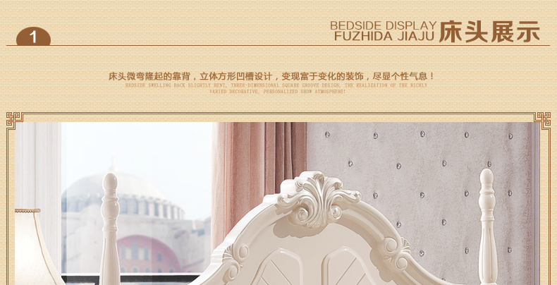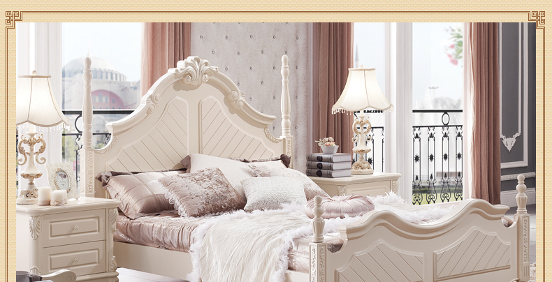 象牙白的颜色高贵大气,雕花精致,美美哒公主床,搭配我粉红色的墙,简直完败公主风,漂亮精致