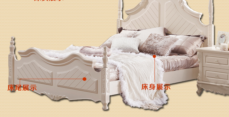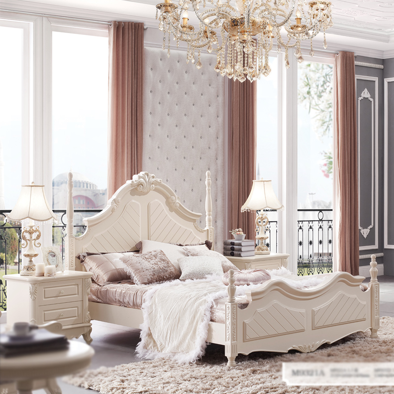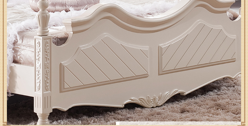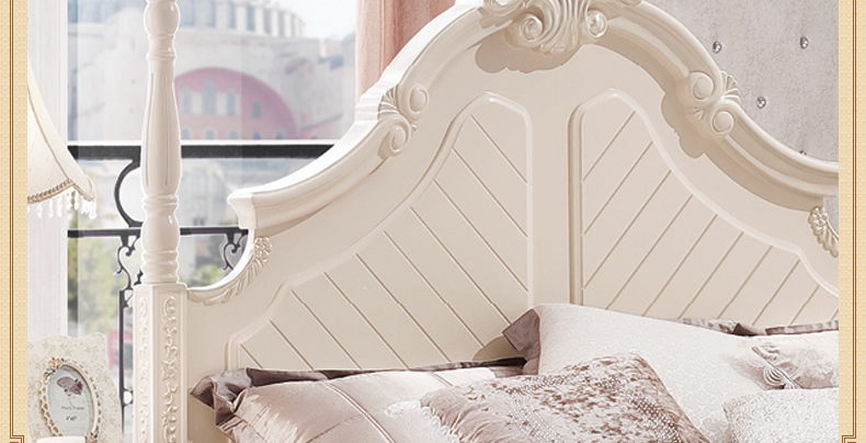 奥迪克白色实木床欧式床雕花婚床1.8米简欧双人床田园大床M9321A