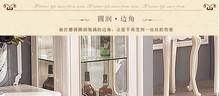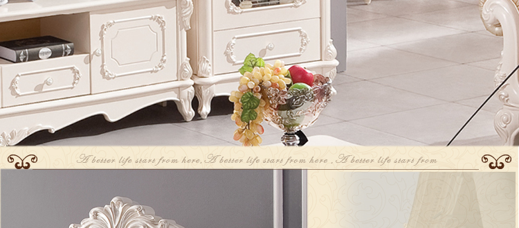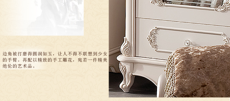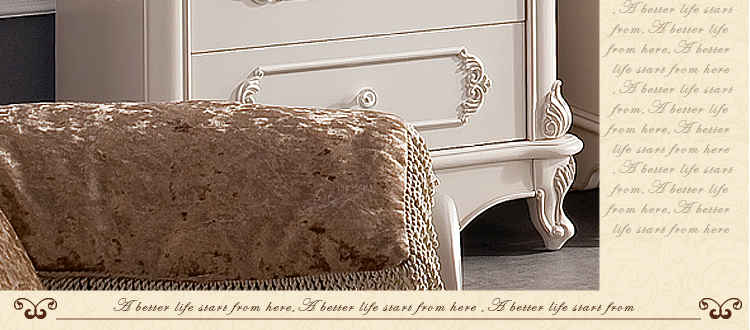 欧式风格家具特点讲究手工精细的裁切雕刻,轮廓和转折部分由对称而富有节奏感的曲线或曲面构成,结构简练,线条流畅,色彩富丽,艺术感强,给人的整体感觉是华贵优雅,十分庄重。