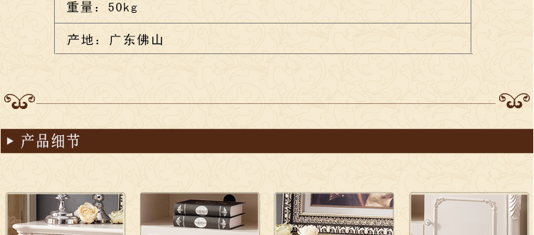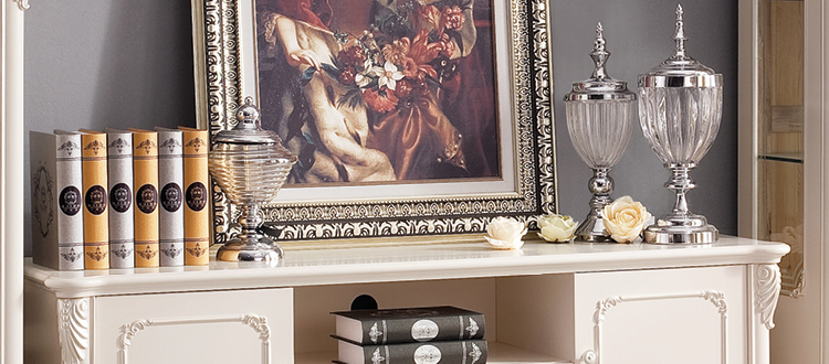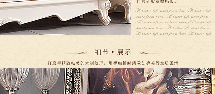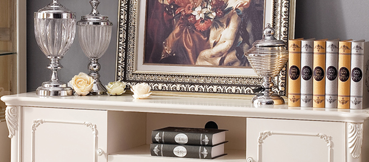 欧式风格家具特点讲究手工精细的裁切雕刻,轮廓和转折部分由对称而富有节奏感的曲线或曲面构成,结构简练,线条流畅,色彩富丽,艺术感强,给人的整体感觉是华贵优雅,十分庄重。