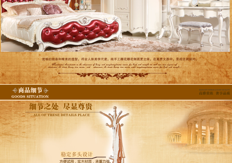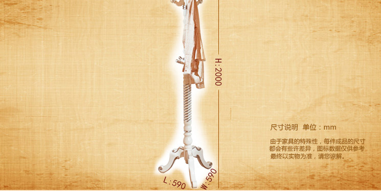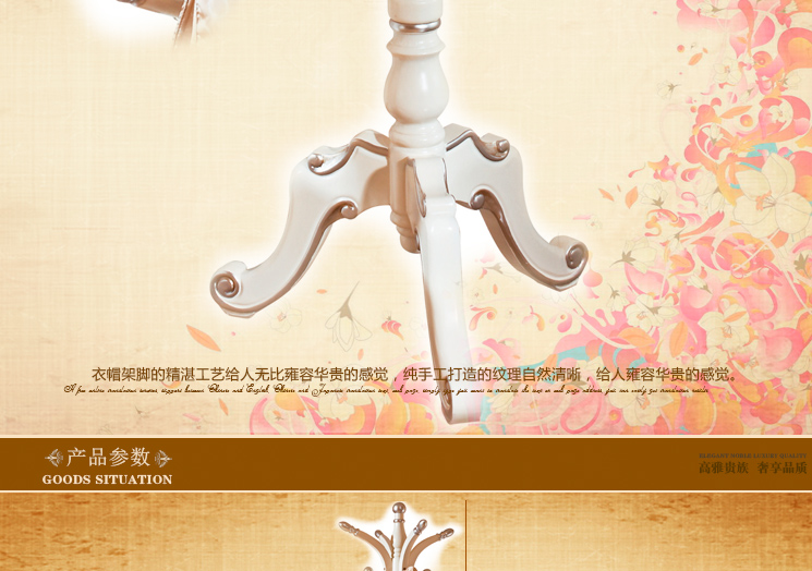 尚多家居 MJ801象牙白+银箔做旧法式雕花 卧室门厅 衣帽架挂衣架