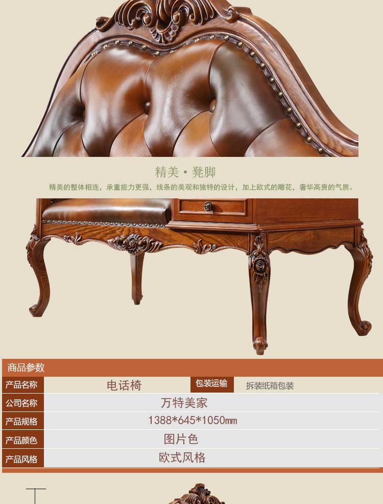 万特美家 实木家具欧式电话椅 欧式沙发椅 实木电话椅 D86