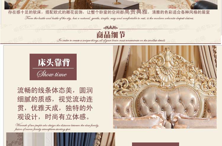 雕花精美,款式奢华大气,摆放后很有档次 如果卧室面积大些效果会更好,不错的一款,值得入手