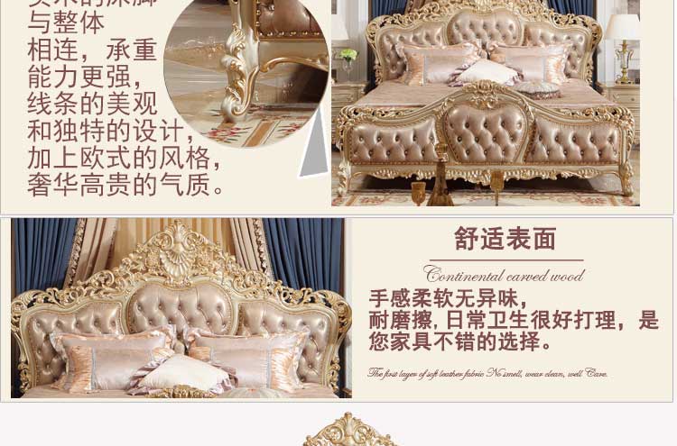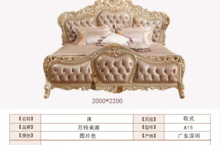 万特美家 厂家直销欧式新款双人床实木雕花大床百搭大床A15